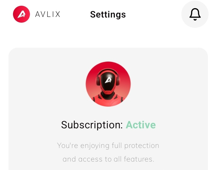If you have an active Avlix Antivirus subscription, the status is shown directly in the app.