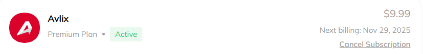 If you want to cancel your Avlix subscription, you can do so by logging into your account and navigating to the Subscription section.
